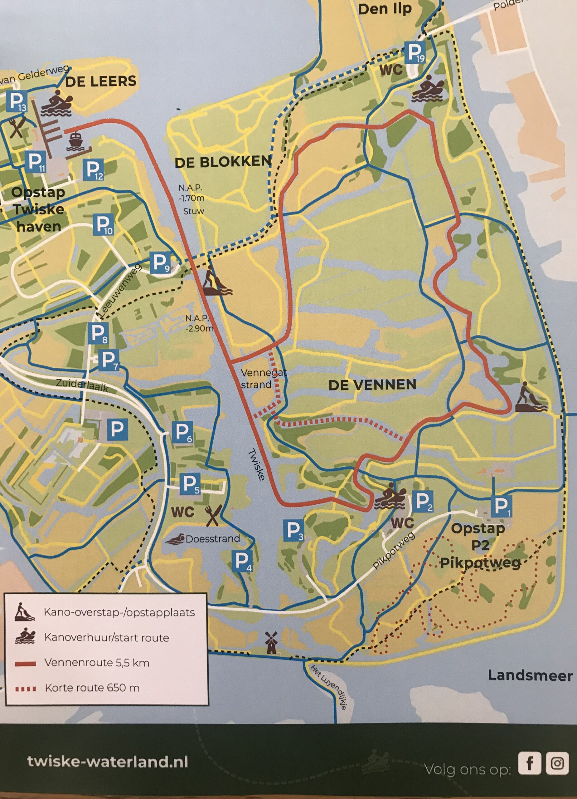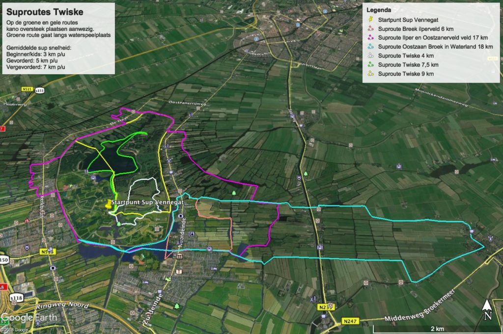 Overzichtkaart Vennen suproutes Twiske Waterland: